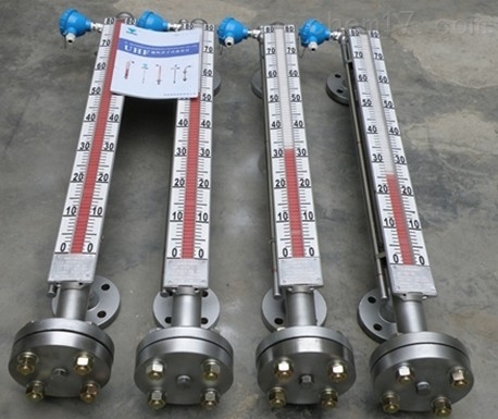 在管體的另一側(cè)可按用戶需要加裝電遠傳變送器,將液位高度轉(zhuǎn)換成標準電流信號輸出,以供液位信號輸出,以供液位信號遠傳至二次儀表進行指示控制與檢測。