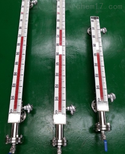 根據(jù)浮力原理,浮子在測(cè)量管內(nèi)隨液位的升降而上、下移動(dòng),浮子內(nèi)的永久磁鋼通過(guò)耦合作用,驅(qū)動(dòng)紅、白色翻柱翻轉(zhuǎn)180°,液位上升時(shí)翻柱由白色轉(zhuǎn)為紅色,下降時(shí)由紅色轉(zhuǎn)為白色,從而實(shí)現(xiàn)液位指示。