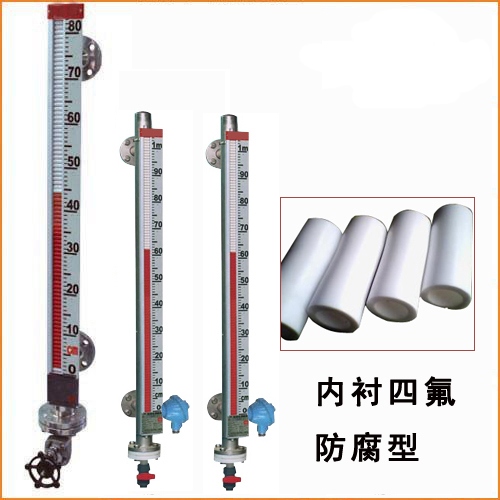 不銹鋼內(nèi)襯防腐型磁翻板液位計采用不銹鋼本體內(nèi)襯聚丙烯(PP)和聚四氟乙烯(PTFE)工藝,有很高的結(jié)構(gòu)強(qiáng)度和耐腐蝕性,可適用于鹽酸等酸性液體、堿性液體和有機(jī)溶劑。但不適合濃縮硝酸、含氯溶劑、芳香劑、脂肪族等介質(zhì)液體的測量。側(cè)裝式內(nèi)襯防腐液位計有不銹鋼主體內(nèi)襯聚四氟乙烯(PTFE)和不銹鋼內(nèi)襯聚丙烯(PP)兩種,適合腐蝕性介質(zhì)的測量。