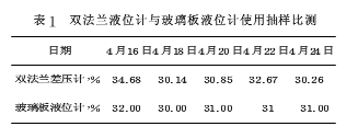 我公司200m³液氨球罐上裝有一臺(tái)3851DP雙法蘭差壓液位計(jì)(量程:-62.04~20.79KPa)、一臺(tái)磁翻板液位計(jì)和一臺(tái)玻璃板式液位計(jì)。磁翻板液位計(jì)由于其腔體未能定期檢修使磁柱顏色不變,因而無法檢測(cè);另一臺(tái)雙法蘭差壓液位計(jì)運(yùn)行穩(wěn)定,但測(cè)量值同玻璃板式液位計(jì)顯示有誤差。2014年4月儀表人員抽樣比測(cè)記錄數(shù)據(jù),見表1所示。因老式玻璃板式液位計(jì)沒有詳細(xì)刻度,該數(shù)據(jù)為粗略目視值。