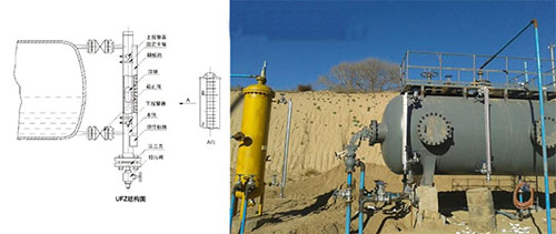 2、在罐內(nèi)不帶壓力的狀態(tài)下以手動方式往儲罐內(nèi)注水,當水位略高于液位計進水管時停止注水,尿素溶液液位計打開下連接法 蘭口手動球閥E并松開罐體與被校液位計間的連接法蘭F(不取下,使水流不過沖),直到管 路中 無涌動流時,關(guān)閉E,取下法蘭,待罐內(nèi)液體平穩(wěn)時打開E,再待呈滴流狀態(tài),穩(wěn)定1min(必要 時可通過排水閥門排水,提高檢測效率);