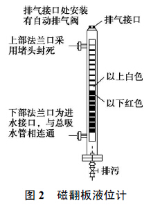 由于在丙酸液位計(jì)的進(jìn)水接口法蘭處安裝有閥門(mén), 在平時(shí)不需要水泵水輪機(jī)排水檢修時(shí), 該閥門(mén)處于關(guān)閉狀態(tài), 必要時(shí)可以通過(guò)裝置底部的排污閥門(mén)把液位計(jì)主導(dǎo)管內(nèi)的水排空。