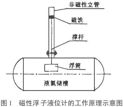 1999 年初, 化工部推薦了磁翻板液位顯示器, 可防止液氯貯槽超裝泄露事故的發(fā)生。 該液位計(jì)結(jié)構(gòu)簡單、醒目方便, 但須在設(shè)備本體( 液氯貯槽) 上焊接支管。 為使操作安全便捷,我廠建議使用新型油罐液位計(jì)。