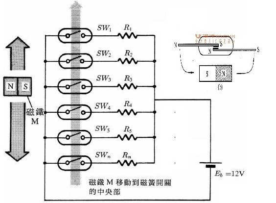 磁變送器(干簧管變送器):與磁開關的原理相似,它是捆綁在浮筒外面。當浮筒里面的浮子隨著液位變化時,上下移動,浮子中的磁鋼所在的位置將改變干簧管中磁開關的狀態(tài)(閉合),只有在磁鋼作用范圍內的干簧管閉合,其它都處于開路狀態(tài),從而改變回路的電阻值,或者說是改變了輸出回路的阻值。浮子的位置相當與電位器的滑動點,隨著浮子的位置變化,引起上下電阻的抽頭(上下電阻值)變化,液位越低,電阻值越大,越高電阻越?。ǔ鼍€在頂部)。由于回路是恒(定電)流,再通過電流/電壓轉換,進而可以轉化為4~20mA/HART 等信號。液位變化,液位旁邊的磁開關閉合,電阻值變化,輸出電壓隨之變化。