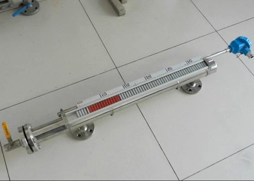 液位計根據(jù)浮力原理,浮子在測量管內(nèi)隨液位的升降而上下移動,浮子內(nèi)的永久磁鋼通過磁耦合作用,驅動紅、白色翻柱翻轉180’液位上升時,翻柱由白色轉為紅色,下降時,翻柱由紅色轉為白色,從而實現(xiàn)液位的指示。
