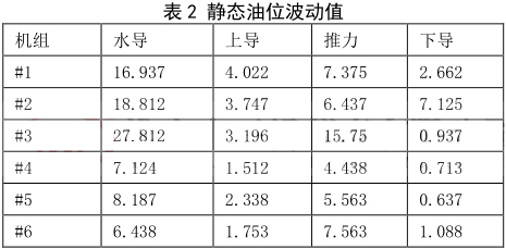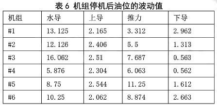 表 6 機(jī)組停機(jī)后油位的波動值