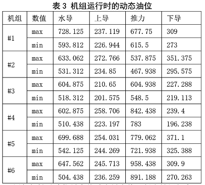 表 3 機(jī)組運(yùn)行時的動態(tài)油位