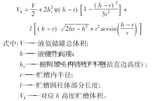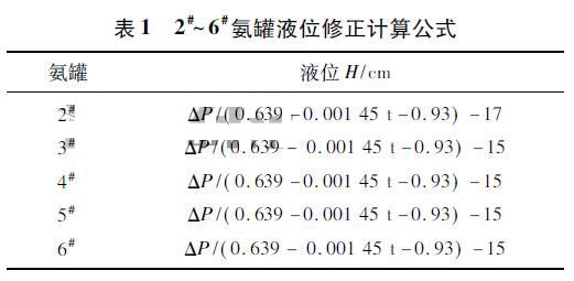 將2#~6#氨罐尺寸代入上式后,體積就與氨罐的液位一一對(duì)應(yīng)了,液位由差壓液位計(jì)進(jìn)行測(cè)量,*終求得體積。