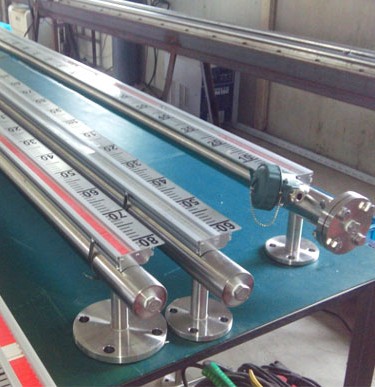 根據(jù)浮力原理,浮子在測量管內(nèi)隨液位的升降而上、下移動,浮子內(nèi)的永久磁鋼通過耦合作用,驅(qū)動紅、白色翻柱翻轉(zhuǎn)180°,液位上升時翻柱由白色轉(zhuǎn)為紅色,下降時由紅色轉(zhuǎn)為白色,從而實現(xiàn)液位指示。